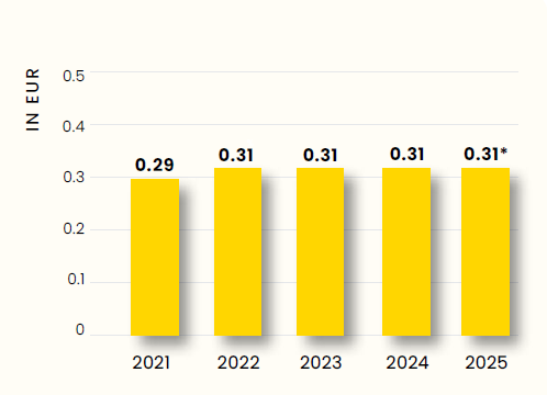 * Subject to approval of the profit appropriation by the General Meeting of 26 May 2026, a dividend of EUR 0.31 gross will be paid per